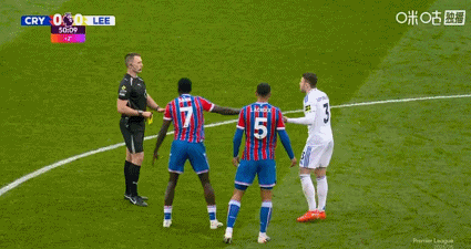 03月15日讯 英超第30轮,水晶宫vs利兹联,上半场伤停补射阶段,利兹联后场球员古德蒙德松违例 领到第二张警告 ,经过水晶宫球员提醒,主裁判 将其驱逐 罚下!